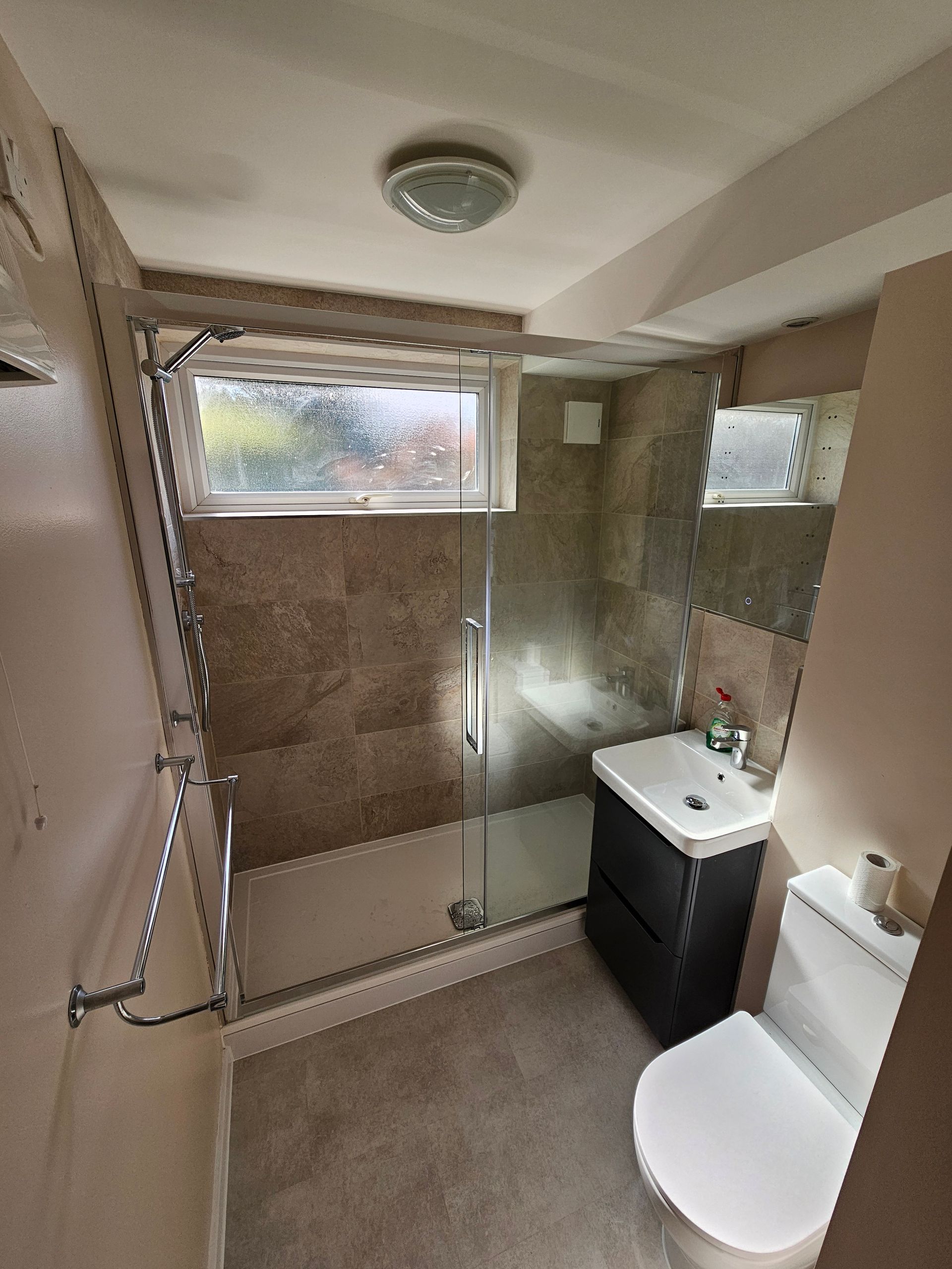 Initally the bathroom included a bath, this was replaced with a walk in shower.